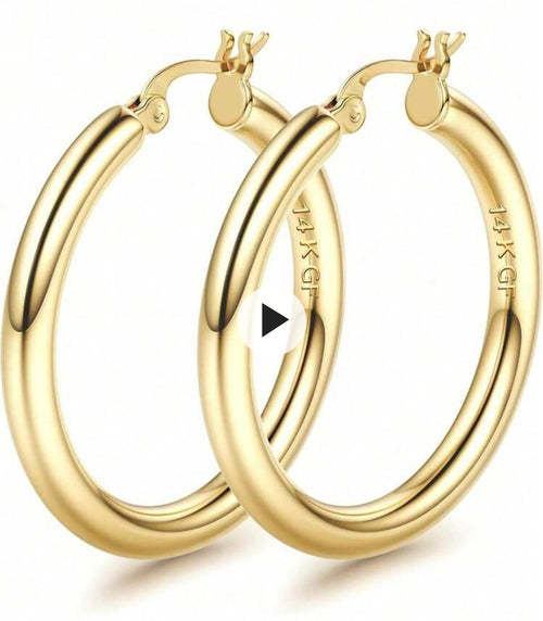 14K Gold Filled Hoop Earrings | 40mm Creole Hoops | Hypoallergenic Fine Jewelry for Women & Girls